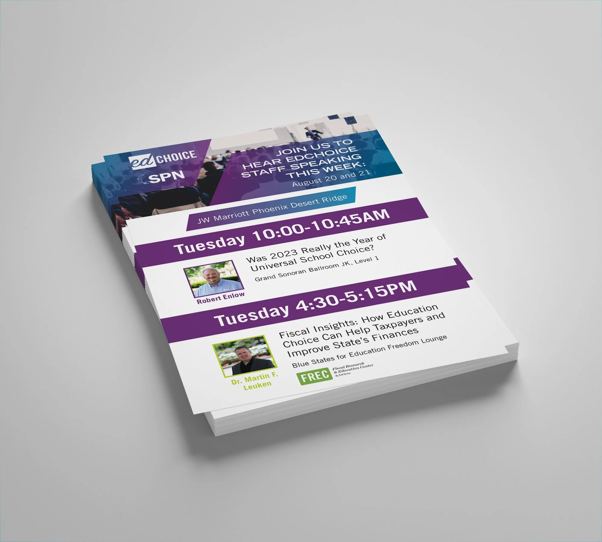 Project: Design a small postcard with the company schedule while following the brand guidelines. As well as taking care of printing at the event location.